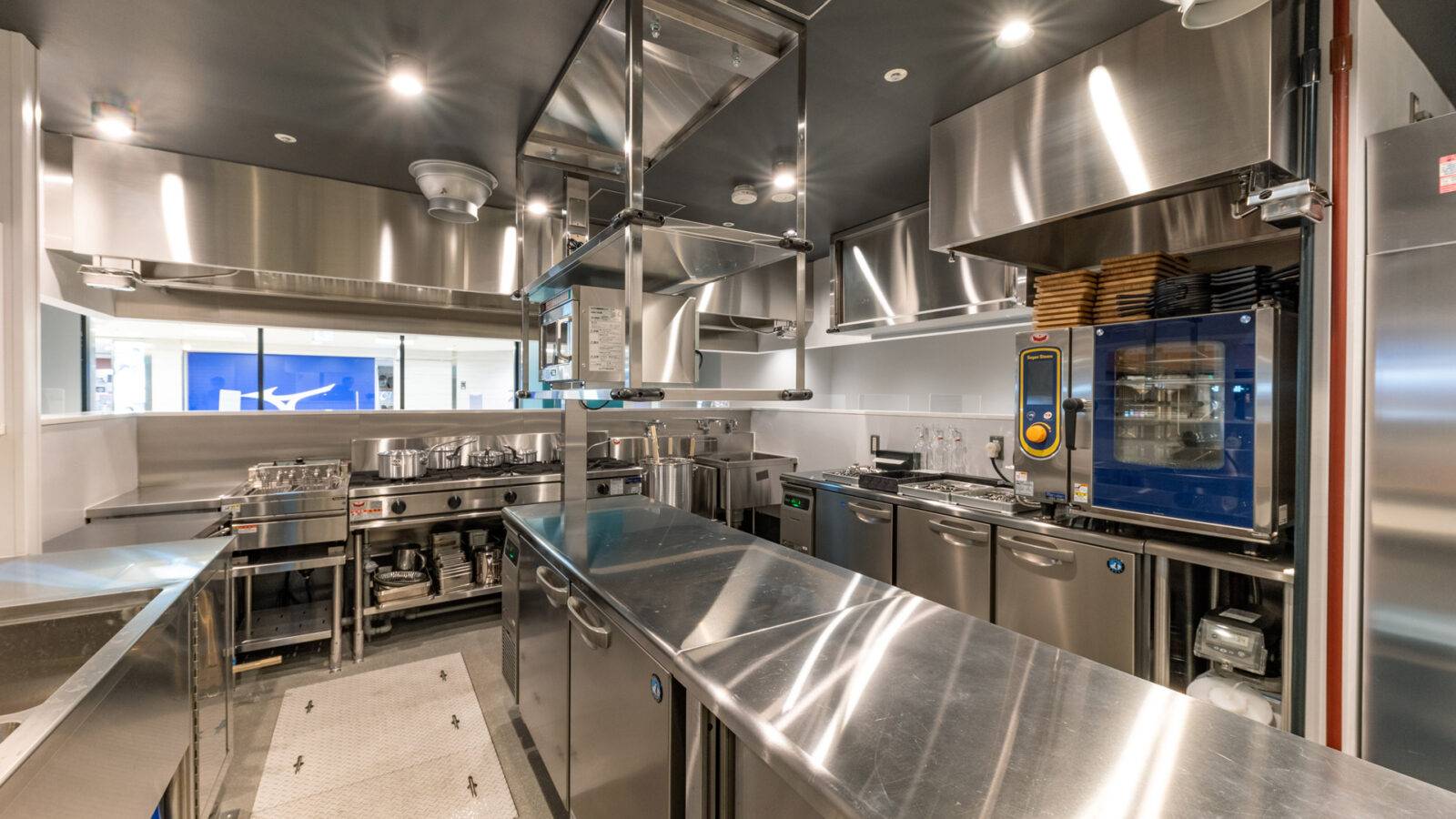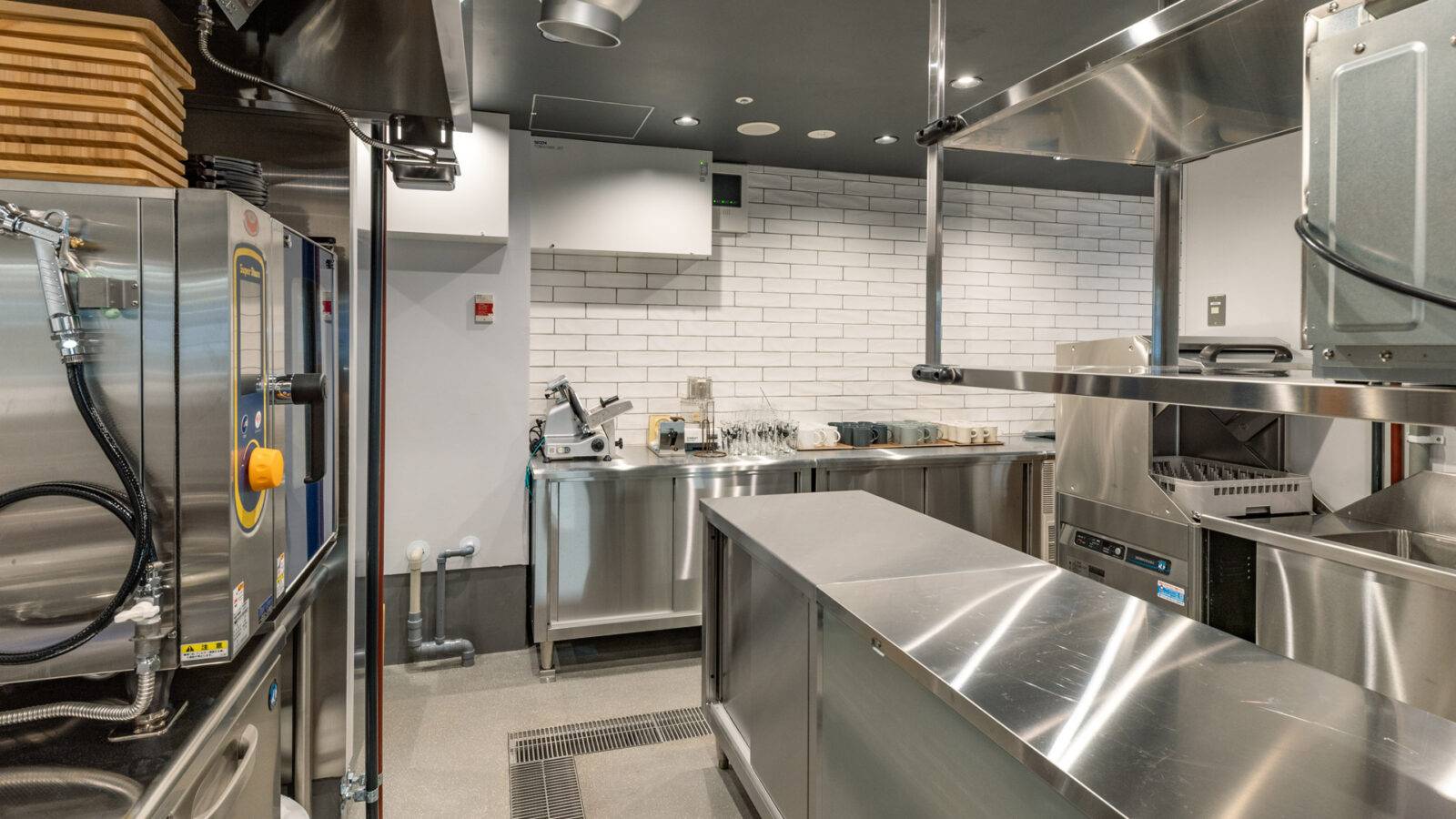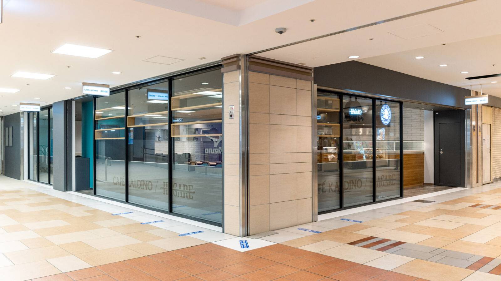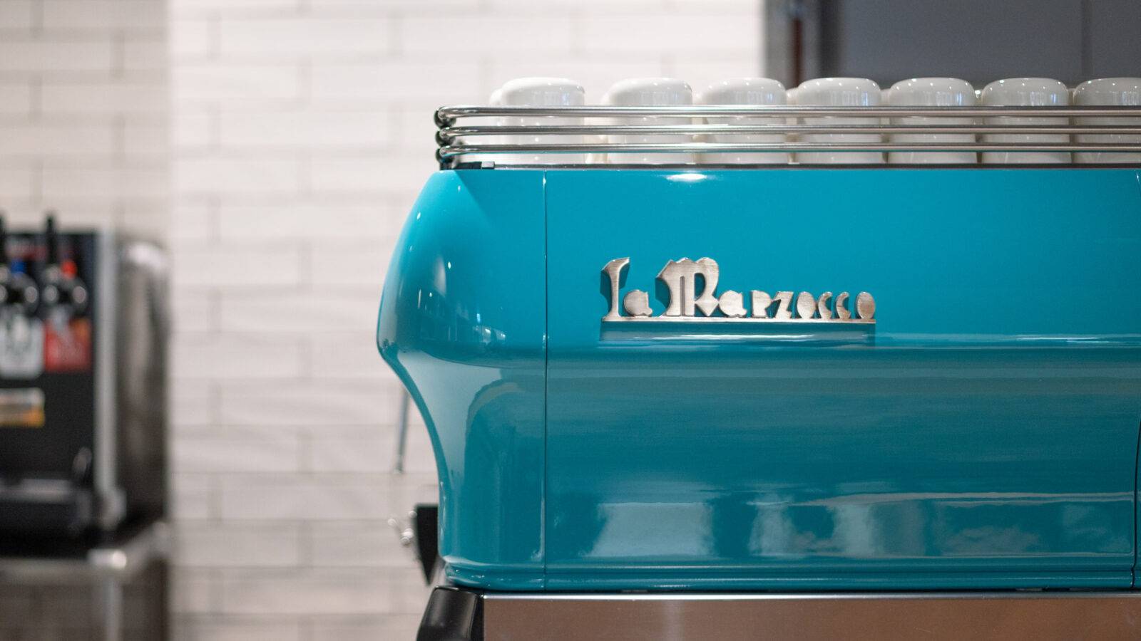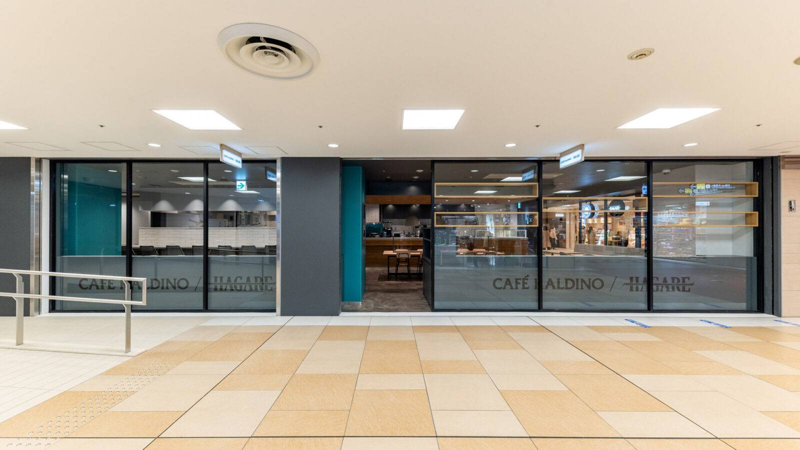 八重洲の地下飲食店街にベーカリーカフェ&ワインバーをデザイン。鮮やかなコーヒーマシンのカラーを空間にも落とし込んだ。